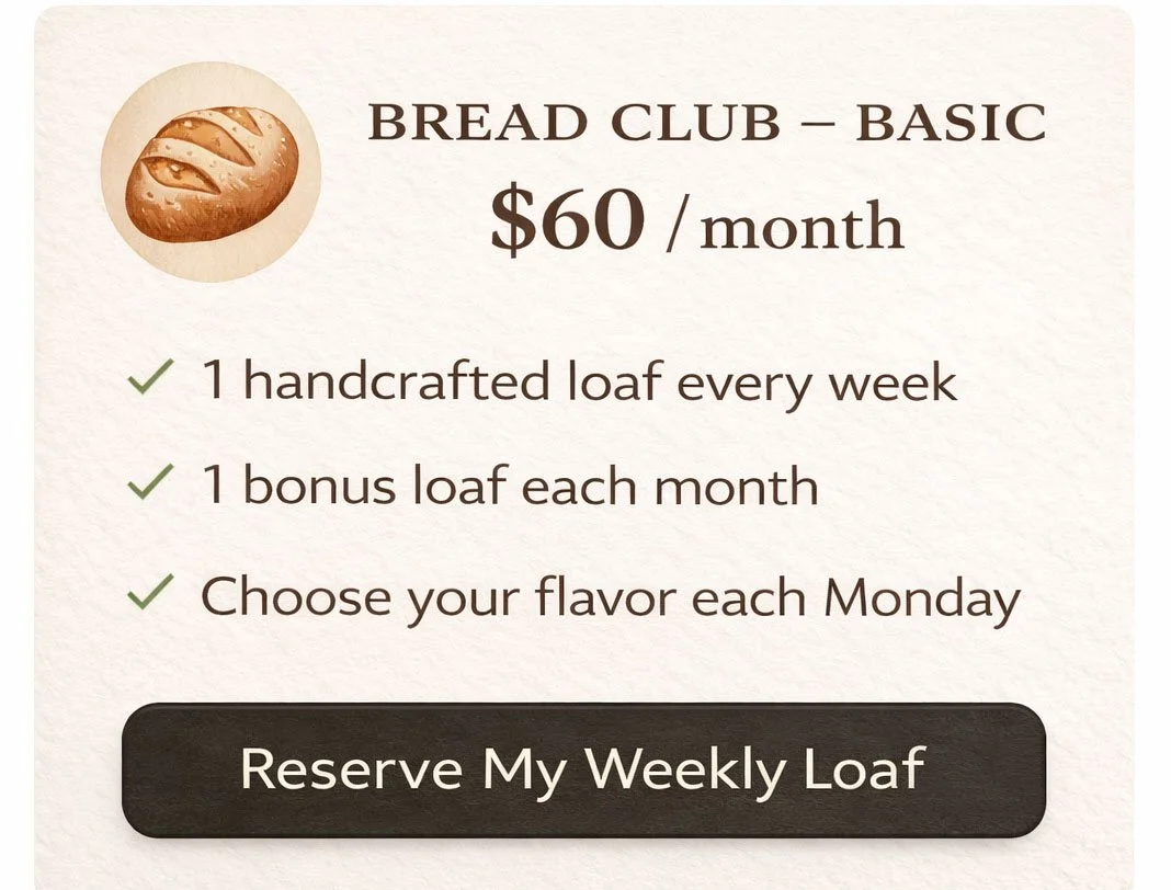 There is something about working in the kitchen early in the morning. It is quiet. Simple. Just flour, water, time, and a process that has not changed much over the years. That is what the Hearth Club is built on. Each week, you choose your loaf/ loaves: